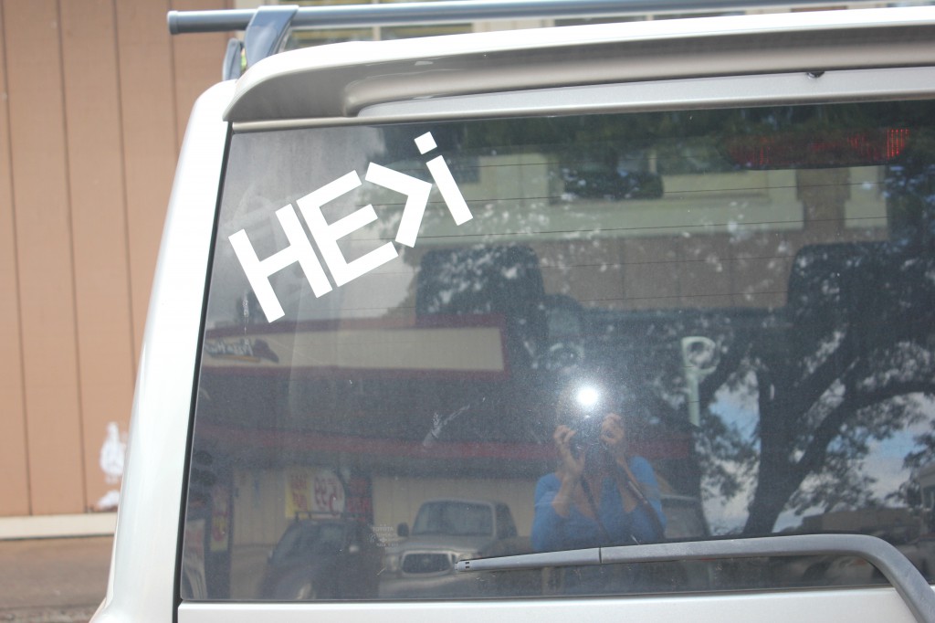 A neighbor of ours has this HE>I sticker and yep…it took me a while to figure it out too. I love it! (my kids told me what it meant). I need to get one…or two! We are on Maui and have been here for 5 years.